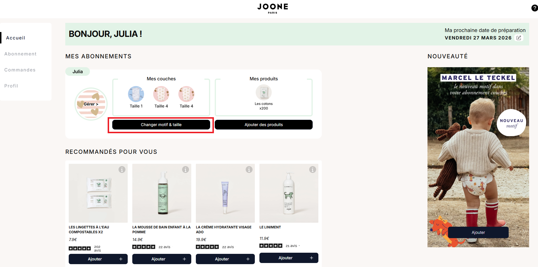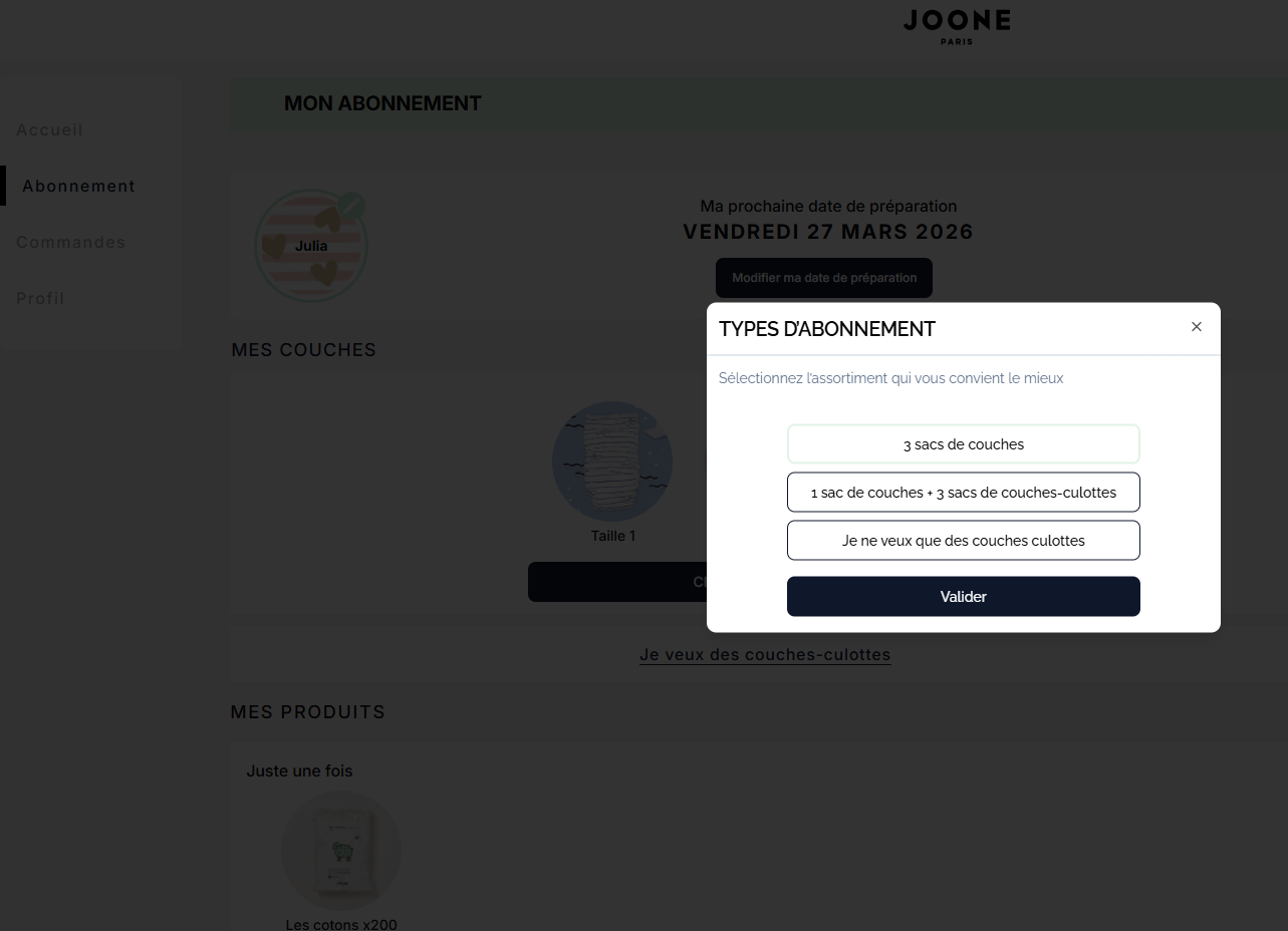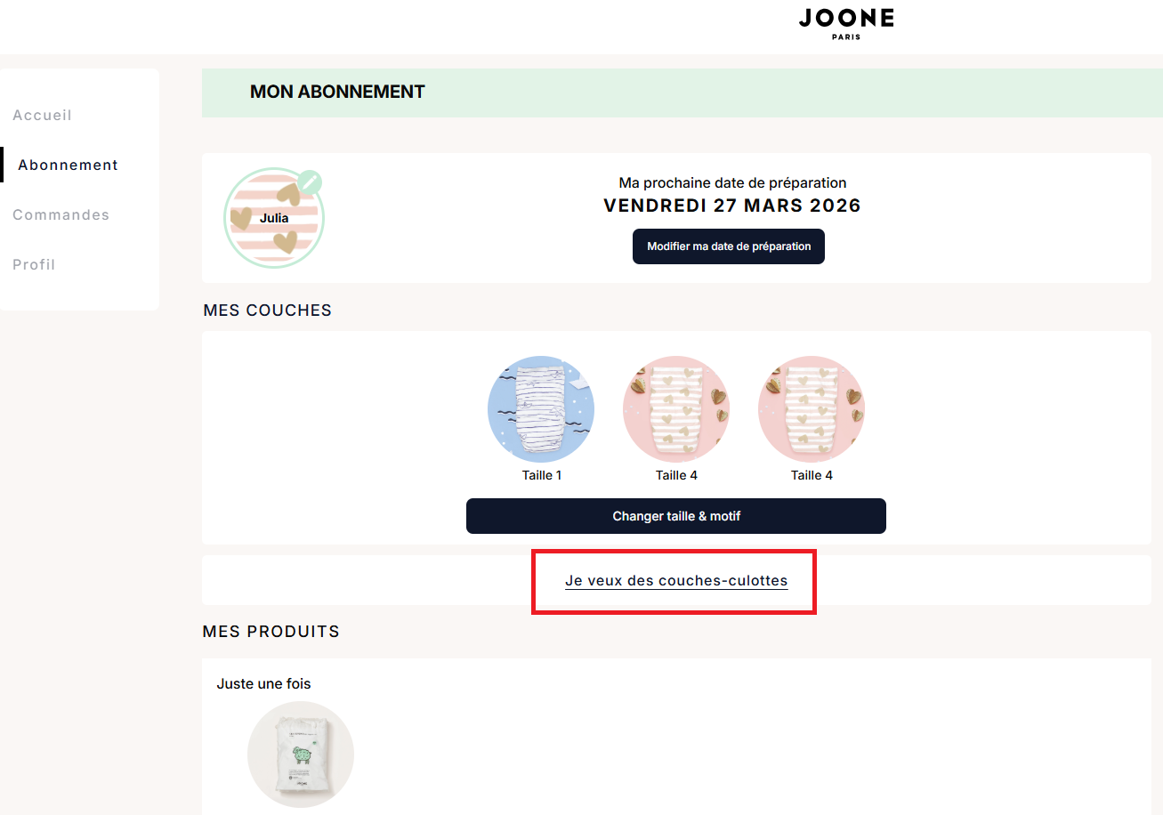 Pour modifier votre abonnement pour un abonnement mix couches + couches culottes 😊